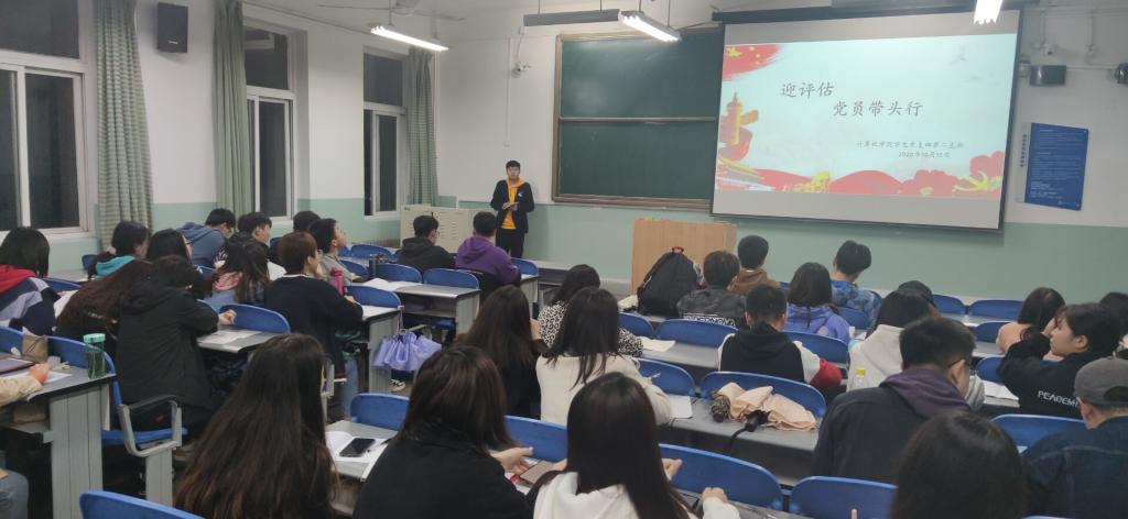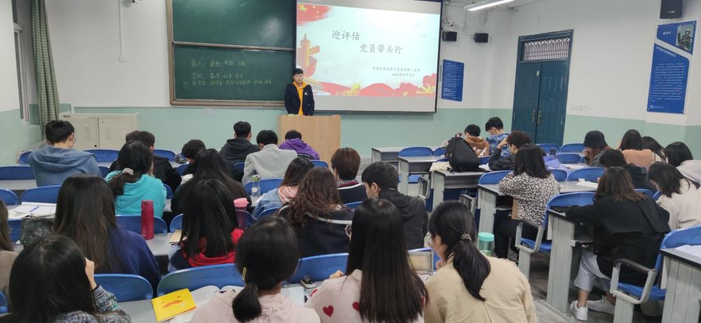 在学校评估即将到来之际,为迎接合格评估专家组进校考察,10月12日,新葡萄官网AMG学生第二党支部组织41名学生党员和预备党员于主楼214教室开展了“迎评估,党员带头行”主题讨论活动,活动由学生党员张鑫主持,学生第二支部党员、预备党员和积极分子参加。