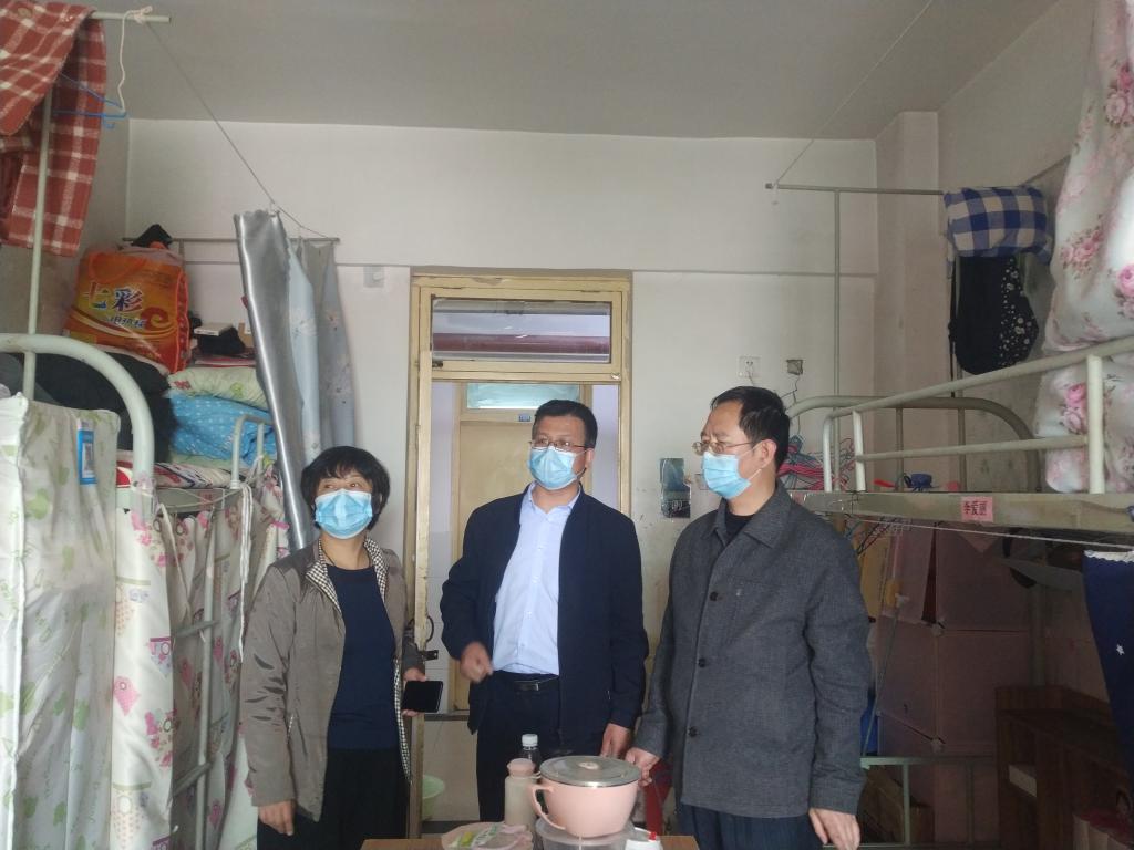 作为联系新葡萄官网AMG的校领导,宁永录副校长十分关心学院工作。4月27日,他来到新葡萄官网AMG督查指导毕业生复学返校准备等工作,新葡萄官网AMG党总支书记刘晋云、院长杨俊清、副院长任静及学生管理科参加了检查接待工作。