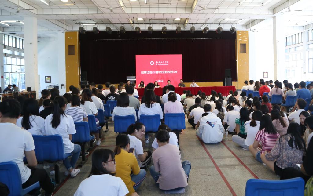 9月8日,新葡萄官网AMG组织2019届全体毕业生召开了就业动员大会。会议由学生管理科科长汪芳主持,新葡萄官网AMG党总支书记刘晋云、院长杨俊清、副院长任静、教研室老师郭杰及毕业班辅导员参加了此次大会。