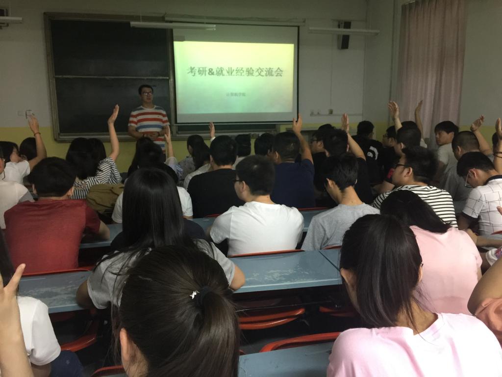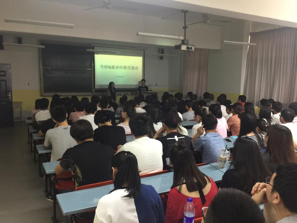 会上,分别考入西北工业大学、西安石油大学的饶磊和张荣同学向大家分享了各自的考研经验,内容包括教材的选用、时间进程的安排、心态的调整等,随后根据同学们准备考研过程中提出的问题进行了解答。荣东柱、管银乐和李川同学给大家分享了他们基于计算机专业就业的心得体会,针对大家提出的问题也都耐心地一一解答。整个交流会气氛热烈,不时地传出阵阵掌声。最后,米嘉琪希望同学能合理安排好自己学习和生活的时间,适当放弃一些课外活动,渐渐把重心转移到学业上来。