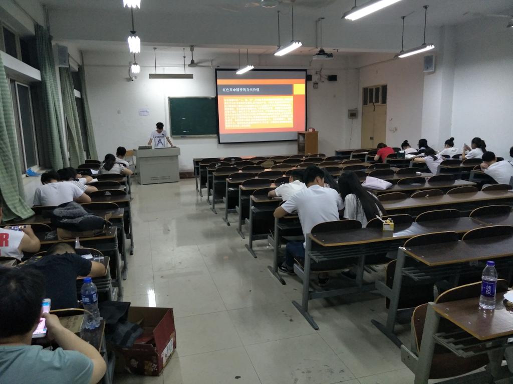 为加大校园爱国主义教育和革命传统教育的力度,积极营造红色育人氛围,进一步开展“一学一做”学习教育,新葡萄官网AMG于5月22日晚组织大一学生召开“红色精神”主题班会。