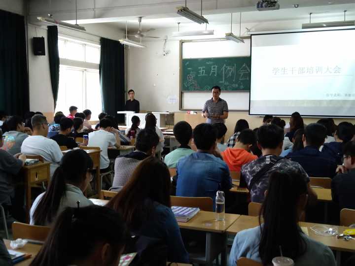 5月8日中午,新葡萄官网AMG组织73名学生会干部和班委在0314教室召开学生干部培训大会。会议由团总支书记米嘉琪主持。