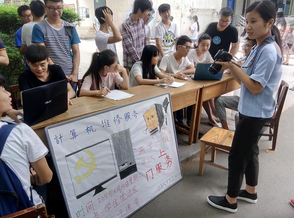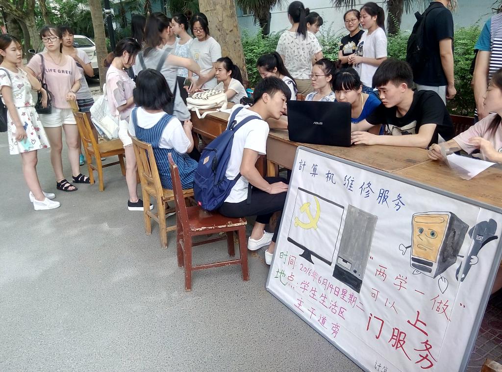 6月14日,新葡萄官网AMG学生党支部组织53名预备党员和积极分子开展计算机服务站活动,主要是针对全校师生计算机方面的问题进行解答和维修。